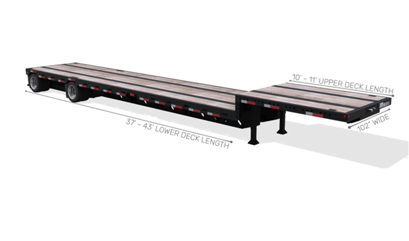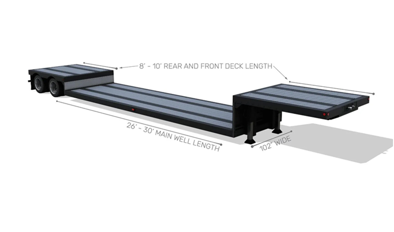 Double drop semi trailers are designed to transport oversize freight, both legally and through the use of permits / escorts. Comprising of three decks: the upper, lower, and well. The low-profile nature of the well allows for freight up to 12’ high to be legally transported. With multiple trailer variations, such as an extendible deck, double drops allow for the transport of a wide array of oversized freight.
