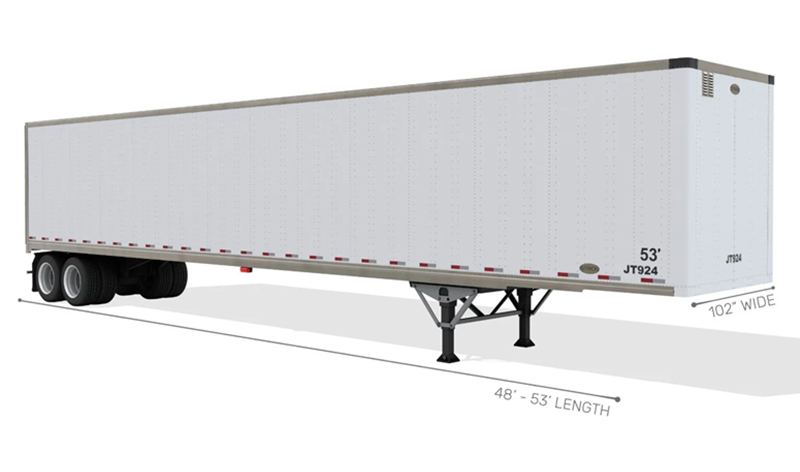 Dry van semi trailers are designed to transport the most versatile of dry products due to the fully enclosed nature of the trailer, which allows freight to be protected from the elements. Palletized products are most common as they can be efficiently and safely loaded / unloaded with a forklift or pallet jack from a dock.